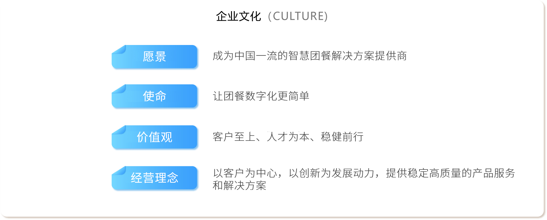 截止目前已相繼為超過1000家客戶,1500+食堂,超過500萬消費(fèi)者,提供智慧食堂就餐服務(wù),覆蓋單位、醫(yī)院、教育、交通、能源、金融、電信等眾多行業(yè)客戶群體,服務(wù)了包括國資委、舟山市政府、佛山公安局、銀川國際機(jī)場、TCL、蘇寧集團(tuán)、金龍魚、阿里巴巴集團(tuán)、東風(fēng)汽車等知名用戶,成為農(nóng)業(yè)銀行、中國移動ICT戰(zhàn)略合作伙伴以及華南理工大學(xué)、中山大學(xué)等知名大學(xué)智慧食堂合作伙伴,是全國智慧食堂行業(yè)領(lǐng)先的知名品牌。